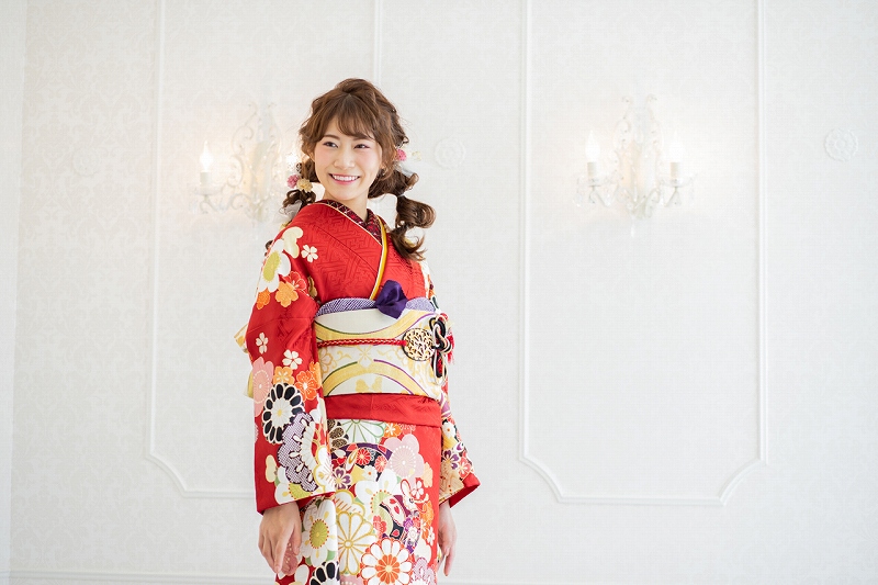 しかし、同じ赤色の振袖であっても、合わせる小物一つひとつで全体の印象は大きく変化し、着る人の個性を際立たせることができます。