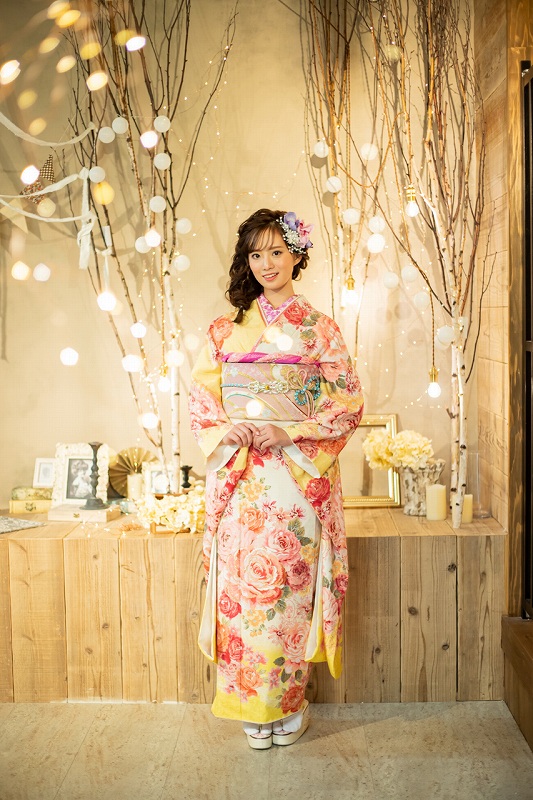イエローベースの方は、黄みを帯びた温かみのあるトーンの振袖を選ぶことで、本来の魅力を引き立てることができます。